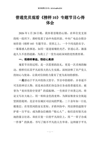 / 【七哥公文】2026年:普通党员观看《榜样10》专题节目心得体会+更多免费公文+VX:QiGeGongWen2024