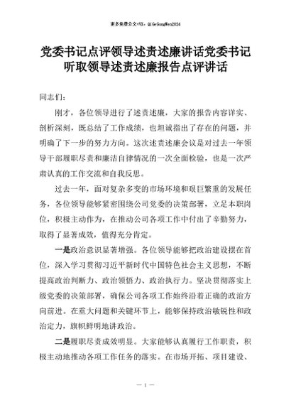 【七哥公文】2026年:党委书记点评领导述责述廉讲话党委书记听取领导述责述廉报告点评讲话+更多免费公文+VX:QiGeGongWen2024