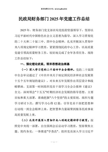 / 【七哥公文】2026年:民政局财务部门2025年党建工作总结+更多免费公文+VX:QiGeGongWen2024
