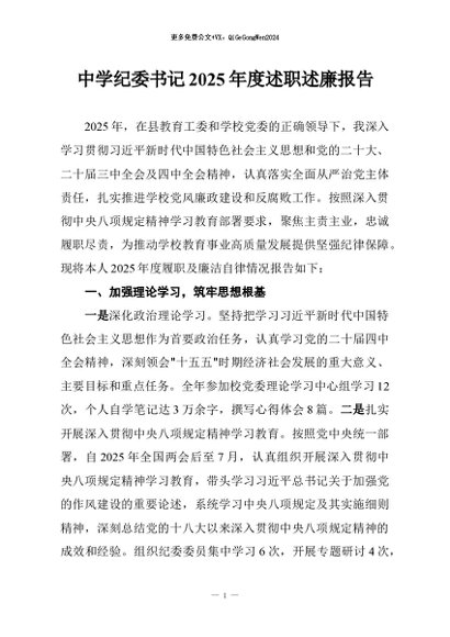 / 【七哥公文】2026年:中学纪委书记2025年度述职述廉报告+更多免费公文+VX:QiGeGongWen2024