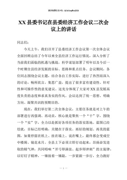 / 【七哥公文】2026年:XX县委书记在县委经济工作会议二次会议上的讲话+更多免费公文+VX:QiGeGongWen2024