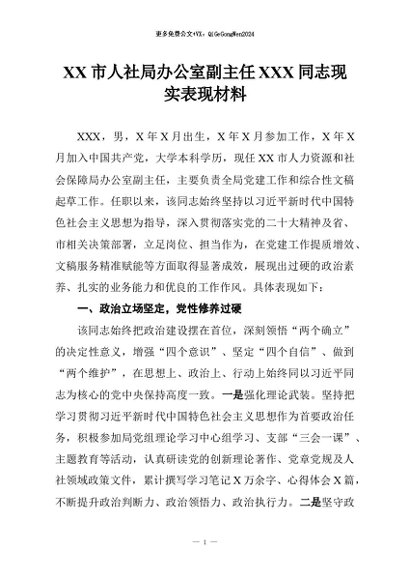 / 【七哥公文】2026年:XX市人社局办公室副主任XXX同志现实表现材料+更多免费公文+VX:QiGeGongWen2024