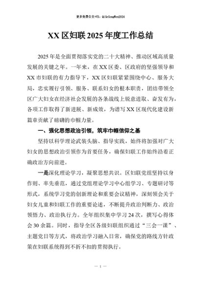 / 【七哥公文】2026年:XX区妇联2025年度工作总结+更多免费公文+VX:QiGeGongWen2024