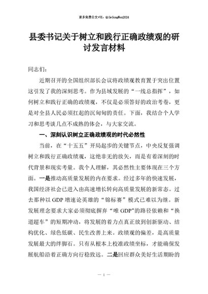 / 【七哥公文】2026年:县委书记关于树立和践行正确政绩观的研讨发言材料+更多免费公文+VX:QiGeGongWen2024