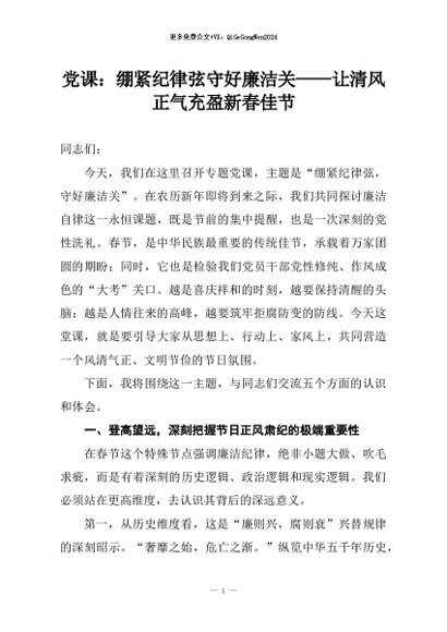 【七哥公文】2026年:党课:绷紧纪律弦守好廉洁关——让清风正气充盈新春佳节+更多免费公文+VX:QiGeGongWen2024