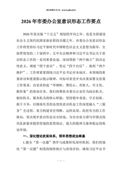 / 【七哥公文】2026年:2026年市委办公室意识形态工作要点+更多免费公文+VX:QiGeGongWen2024