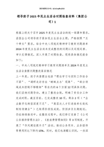 【七哥公文】2026年:领导班子2025年民主生活会对照检查材料(集团公司)1_副本+更多免费公文+VX:QiGeGongWen2024