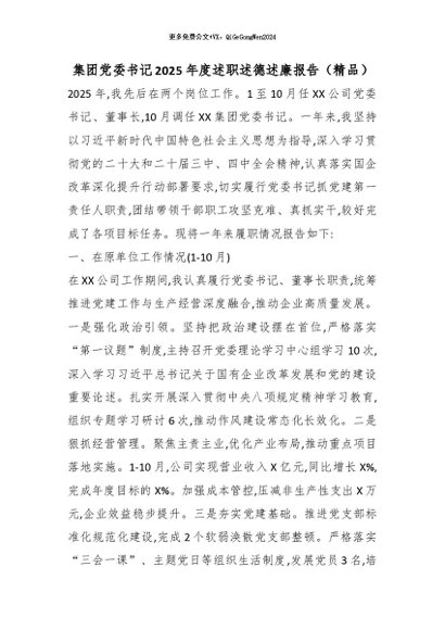 【七哥公文】2026年:集团党委书记2025年度述职述德述廉报告(精品)_副本+更多免费公文+VX:QiGeGongWen2024