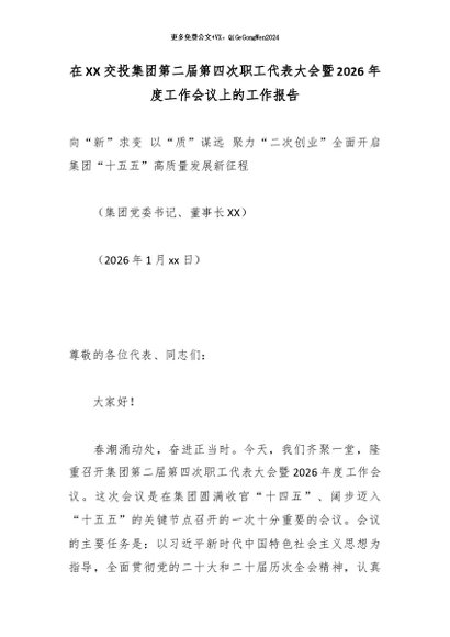 【七哥公文】2026年:在XX交投集团第二届第四次职工代表大会暨2026年度工作会议上的工作报告_副本+更多免费公文+VX:QiGeGongWen2024