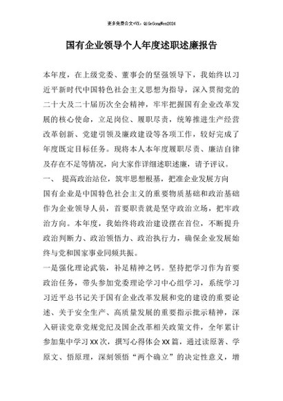 【七哥公文】2026年:国有企业领导个人年度述职述廉报告+更多免费公文+VX:QiGeGongWen2024