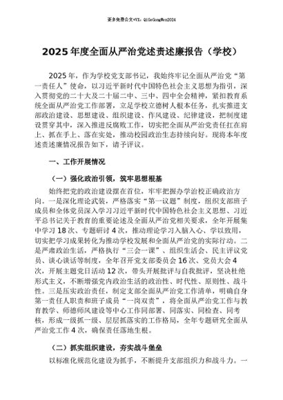 / 【七哥公文】2026年:2025年度全面从严治党述责述廉报告(学校)+更多免费公文+VX:QiGeGongWen2024