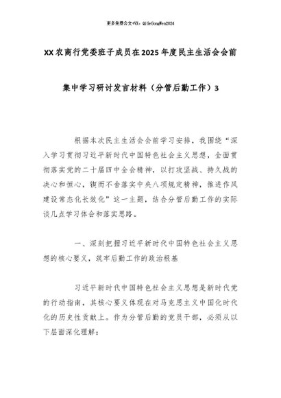 【七哥公文】2026年:XX农商行党委班子成员在2025年度民主生活会会前集中学习研讨发言材料(分管后勤工作)3_副本+更多免费公文+VX:QiGeGongWen2024