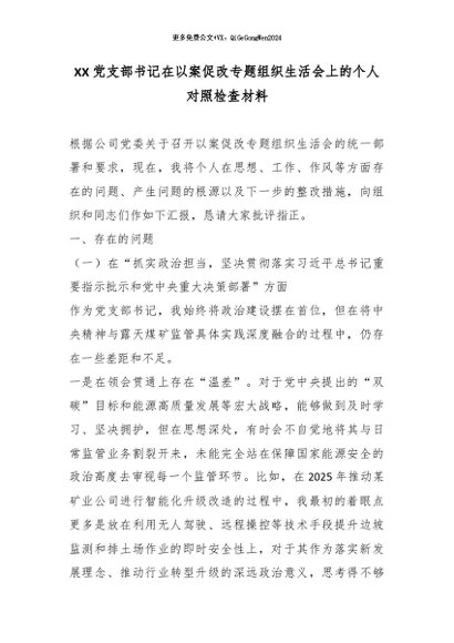 【七哥公文】2026年:XX党支部书记在以案促改专题组织生活会上的个人对照检查材料_副本+更多免费公文+VX:QiGeGongWen2024