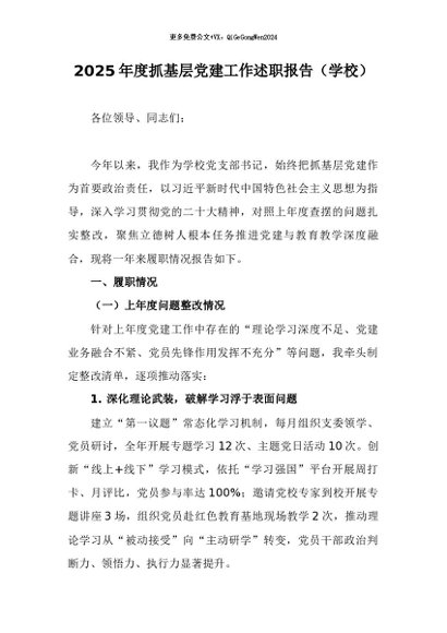 / 【七哥公文】2026年:2025年度抓基层党建工作述职报告(学校)+更多免费公文+VX:QiGeGongWen2024
