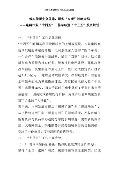 【七哥公文】2026年:筑牢能源安全屏障,服务“双碳”战略大局——电网行业“十四五”工作总结暨“十五五”发展规划+更多免费公文+VX:QiGeGongWen2024