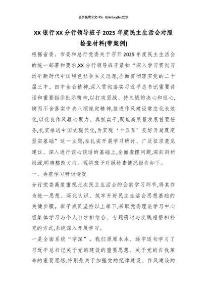【七哥公文】2026年:XX银行XX分行领导班子2025年度民主生活会对照检查材料(带案例)_副本+更多免费公文+VX:QiGeGongWen2024