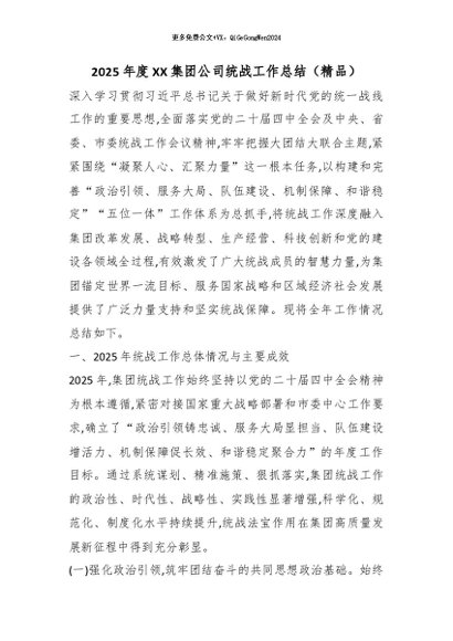【七哥公文】2026年:2025年度XX集团公司统战工作总结(精品)_副本+更多免费公文+VX:QiGeGongWen2024