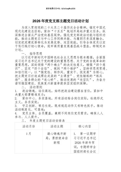 【七哥公文】2026年:1_2026年度党支部主题党日活动计划+更多免费公文+VX:QiGeGongWen2024