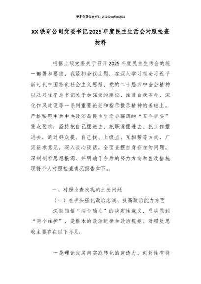 【七哥公文】2026年:XX铁矿公司党委书记2025年度民主生活会对照检查材料_副本+更多免费公文+VX:QiGeGongWen2024