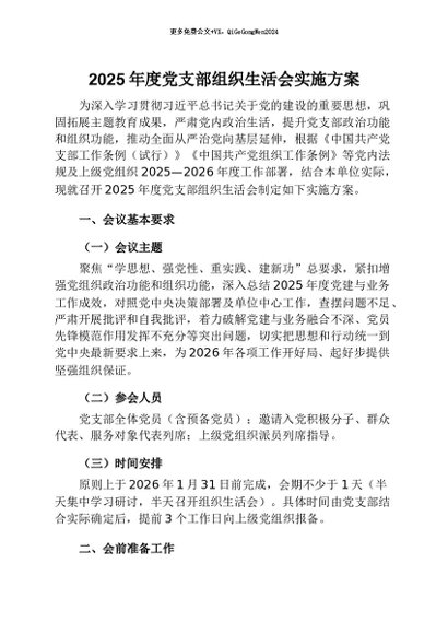 / 【七哥公文】2026年:2025年度党支部组织生活会实施方案+更多免费公文+VX:QiGeGongWen2024