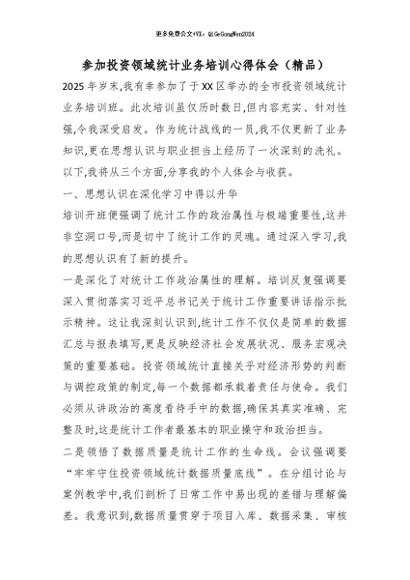【七哥公文】2026年:参加投资领域统计业务培训心得体会(精品)_副本+更多免费公文+VX:QiGeGongWen2024