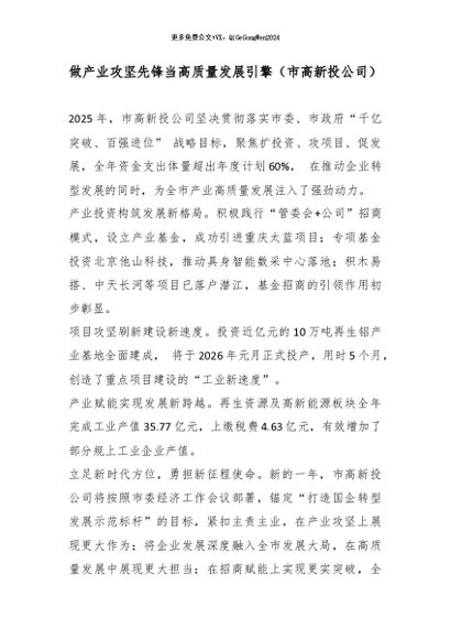 【七哥公文】2026年:做产业攻坚先锋当高质量发展引擎(市高新投公司)_副本+更多免费公文+VX:QiGeGongWen2024