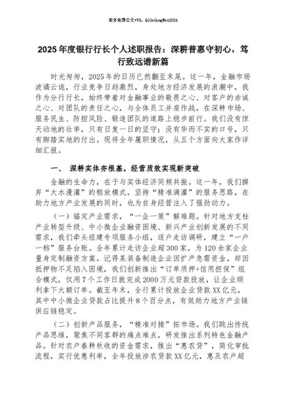 【七哥公文】2026年:2025年度银行行长个人述职报告:深耕普惠守初心,笃行致远谱新篇+更多免费公文+VX:QiGeGongWen2024