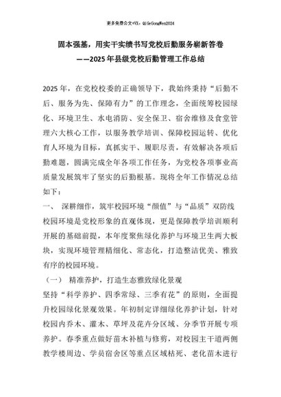 【七哥公文】2026年:固本强基,用实干实绩书写党校后勤服务崭新答卷——2025年县级党校后勤管理工作总结+更多免费公文+VX:QiGeGongWen2024