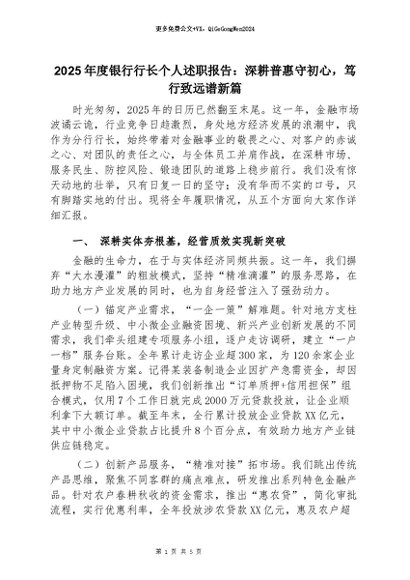 【七哥公文】2026年:2025年度银行行长个人述职报告:深耕普惠守初心,笃行致远谱新篇(1)+更多免费公文+VX:QiGeGongWen2024