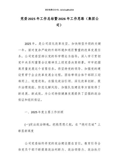 【七哥公文】2026年:党委2025年工作总结暨2026年工作思路(集团公司)_副本+更多免费公文+VX:QiGeGongWen2024