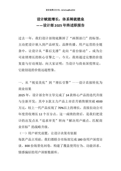 【七哥公文】2026年:设计赋能增长,体系铸就壁垒——设计部2025年终述职报告+更多免费公文+VX:QiGeGongWen2024