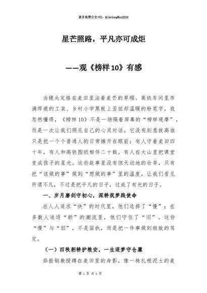/ 【七哥公文】2026年:观《榜样10》有感:星芒照路,平凡亦可成炬+更多免费公文+VX:QiGeGongWen2024