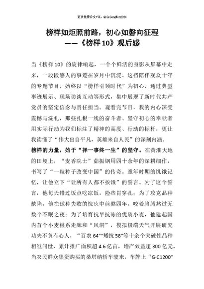 【七哥公文】2026年:榜样如炬照前路,初心如磐向征程——《榜样10》观后感+更多免费公文+VX:QiGeGongWen2024