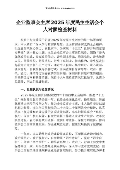 【七哥公文】2026年:企业监事会主席2025年度民主生活会个人对照检查材料+更多免费公文+VX:QiGeGongWen2024