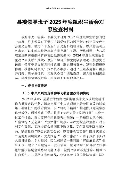 / 【七哥公文】2026年:县委领导班子2025年度组织生活会对照检查材料+更多免费公文+VX:QiGeGongWen2024