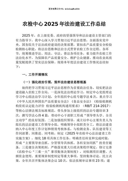 / 【七哥公文】2026年:农检中心2025年法治建设工作总结+更多免费公文+VX:QiGeGongWen2024