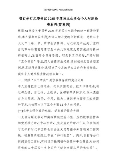 【七哥公文】2026年:银行分行纪委书记2025年度民主生活会个人对照检查材料(带案例)_副本+更多免费公文+VX:QiGeGongWen2024