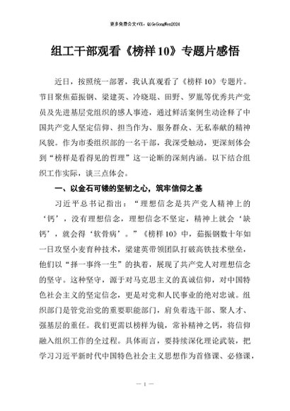 / 【七哥公文】2026年:组工干部观看《榜样10》专题片感悟_副本+更多免费公文+VX:QiGeGongWen2024