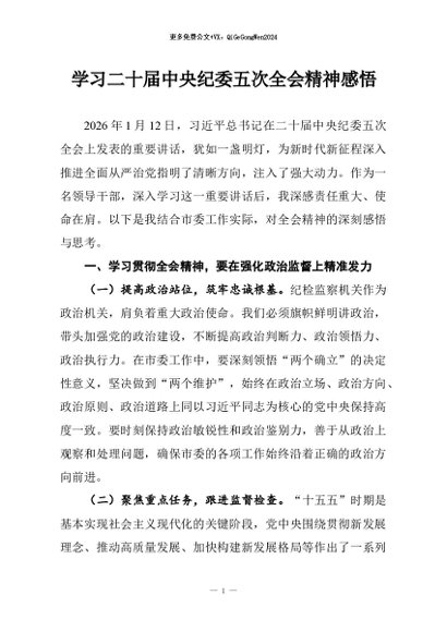 / 【七哥公文】2026年:学习二十届中央纪委五次全会精神感悟+更多免费公文+VX:QiGeGongWen2024