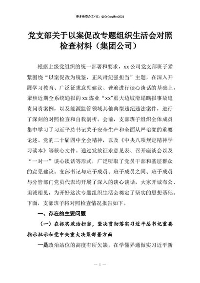 【七哥公文】2026年:党支部关于以案促改专题组织生活会对照检查材料(集团公司)+更多免费公文+VX:QiGeGongWen2024