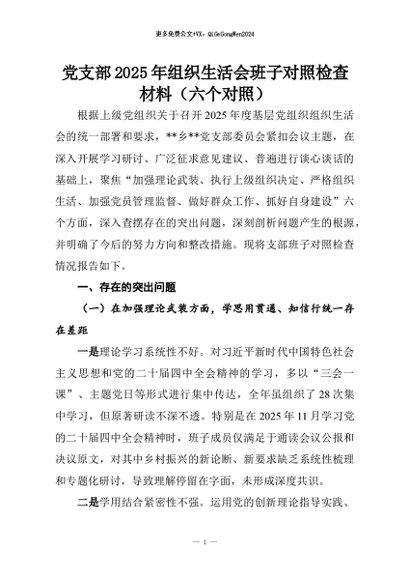 【七哥公文】2026年:党支部2025年组织生活会班子对照检查材料(六个对照)+更多免费公文+VX:QiGeGongWen2024
