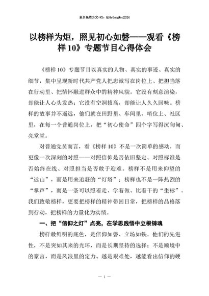 【七哥公文】2026年:以榜样为炬,照见初心如磐——观看《榜样10》专题节目心得体会_副本+更多免费公文+VX:QiGeGongWen2024
