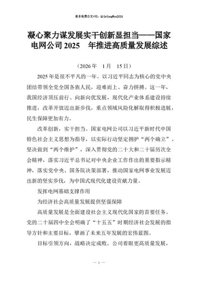 【七哥公文】2026年:凝心聚力谋发展实干创新显担当——国家电网公司2025 年推进高质量发展综述+更多免费公文+VX:QiGeGongWen2024