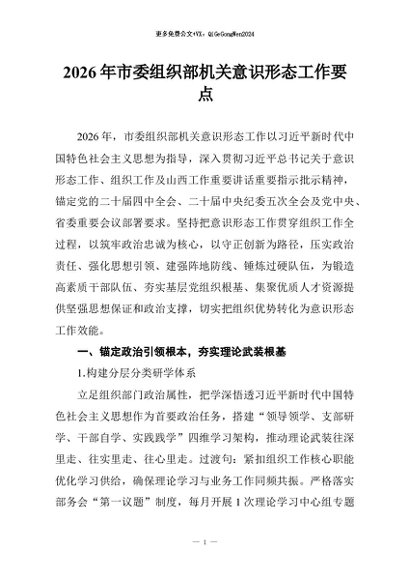 / 【七哥公文】2026年:2026年市委组织部机关意识形态工作要点+更多免费公文+VX:QiGeGongWen2024