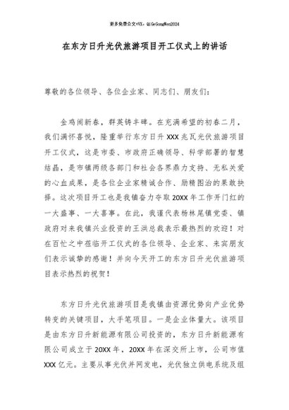 / 【七哥公文】2026年:在东方日升光伏旅游项目开工仪式上的讲话_副本+更多免费公文+VX:QiGeGongWen2024