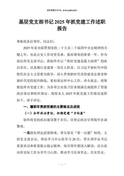 / 【七哥公文】2026年:基层党支部书记2025年抓党建工作述职报告+更多免费公文+VX:QiGeGongWen2024