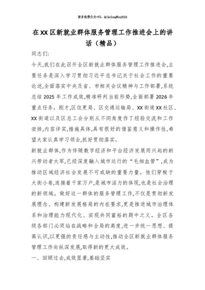 【七哥公文】2026年:在XX区新就业群体服务管理工作推进会上的讲话(精品)_副本+更多免费公文+VX:QiGeGongWen2024