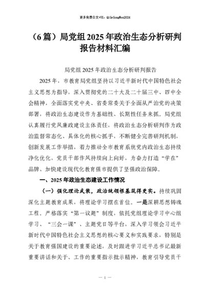 【七哥公文】2026年:(6篇)局党组2025年政治生态分析研判报告材料汇编+更多免费公文+VX:QiGeGongWen2024
