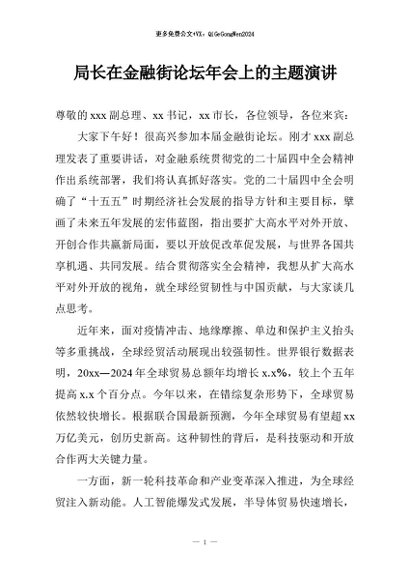 / 【七哥公文】2026年:局长在金融街论坛年会上的主题演讲+更多免费公文+VX:QiGeGongWen2024
