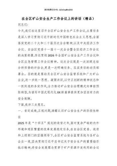 【七哥公文】2026年:在全区矿山安全生产工作会议上的讲话(精品)_副本+更多免费公文+VX:QiGeGongWen2024